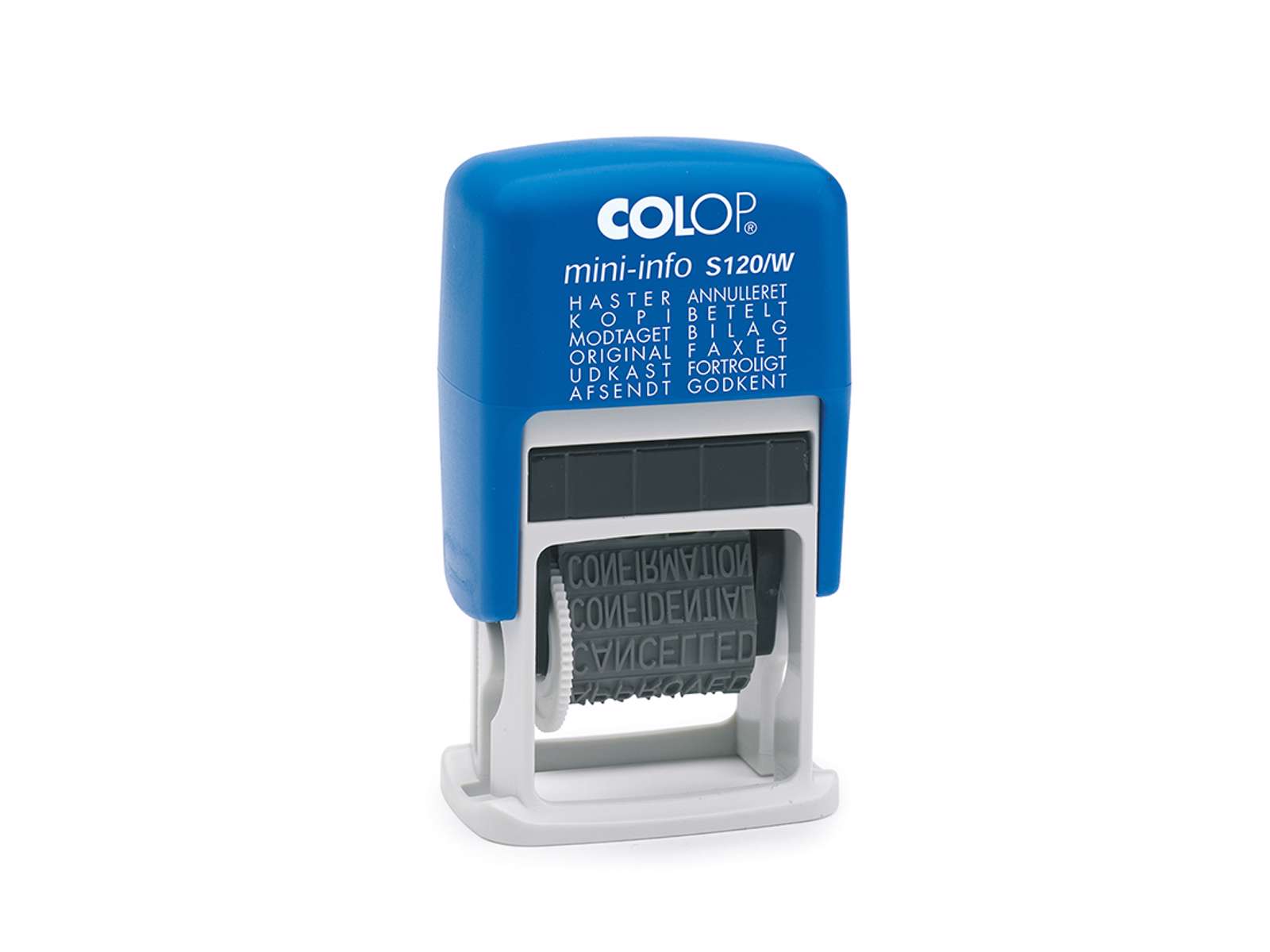 Du drejer nemt hen til den næste tekst. Vælg mellem 12 forskellige tekster 4mm Kopi Haster Afsendt Annulleret Bestilt Bilag Faxet Fortroligt Godkendt Modtaget Original Udkast