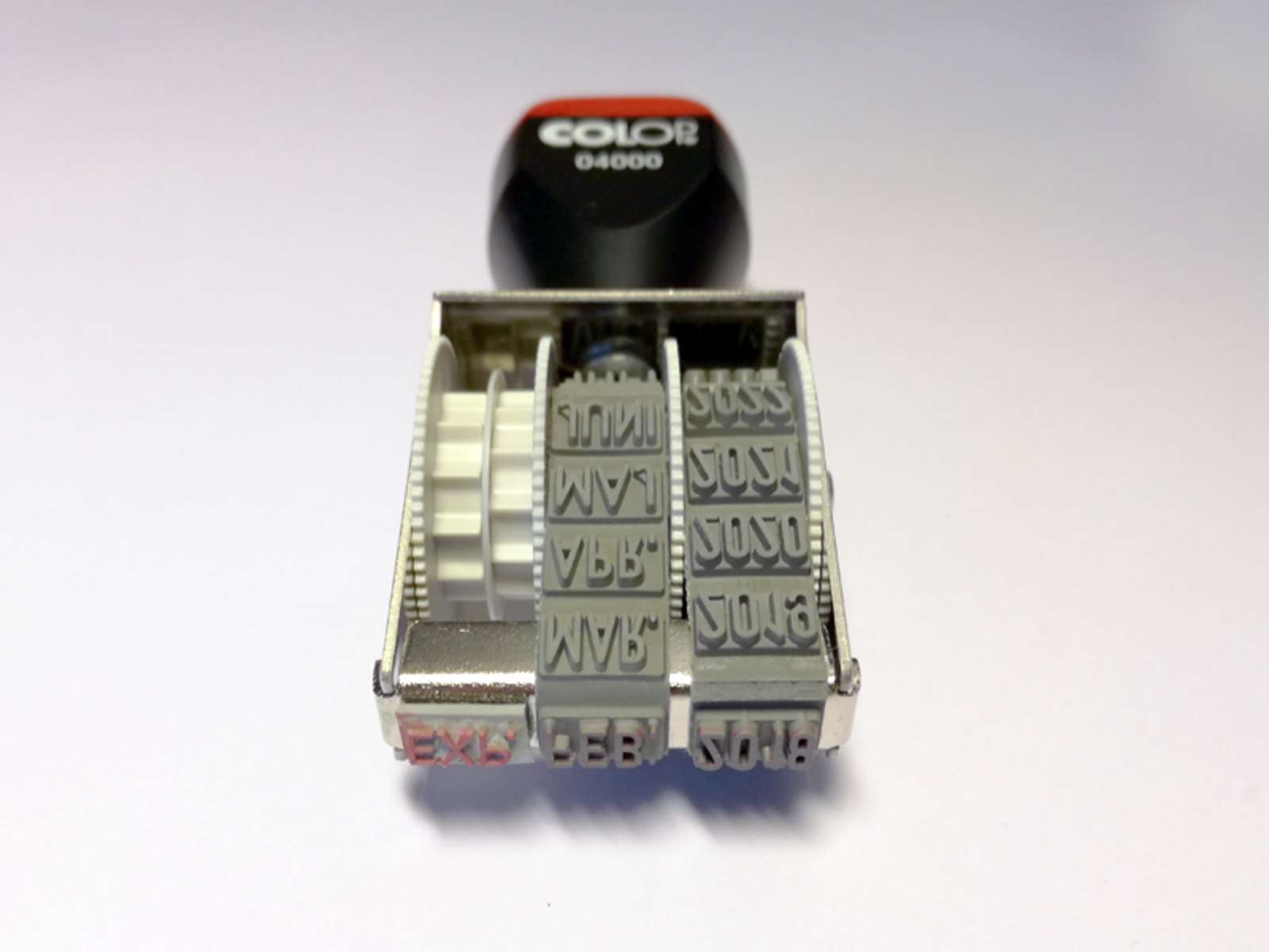Dato stempel 3 mm høj dato med tekst EXP foran datoen.
