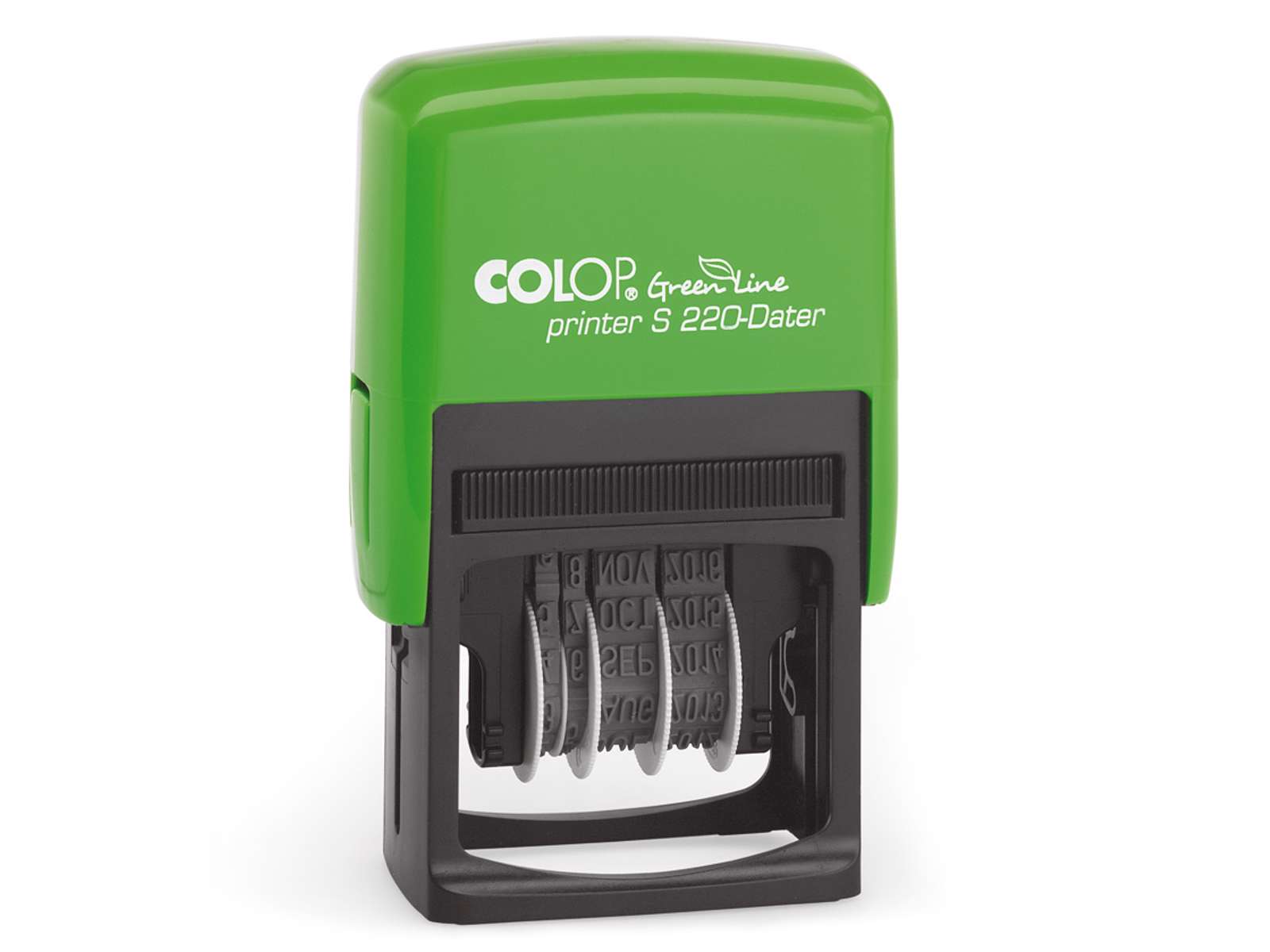 Datostempel Colop Green 220 Det bedste datostempel - til den bedste pris. 220 Datostempel i Greenline serien. Med dag/måneder/år 4 mm årsbånd til de næste 12 år. Månederne er i bogstaver 01 OK T. 2033 Mål på aftrykket: 4mm høj dato - 25mm langt.