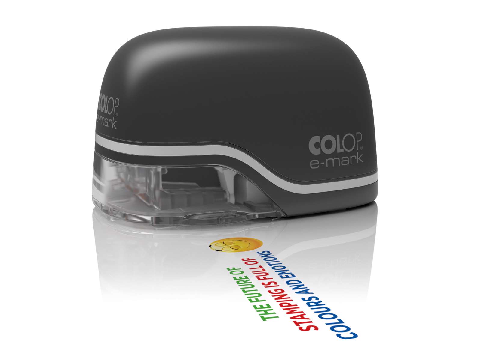 Stemplet er nemt at anvende til klassiske stempelaftryk, men nu med et flerfarvet aftryk af logoer, billeder og tekst.