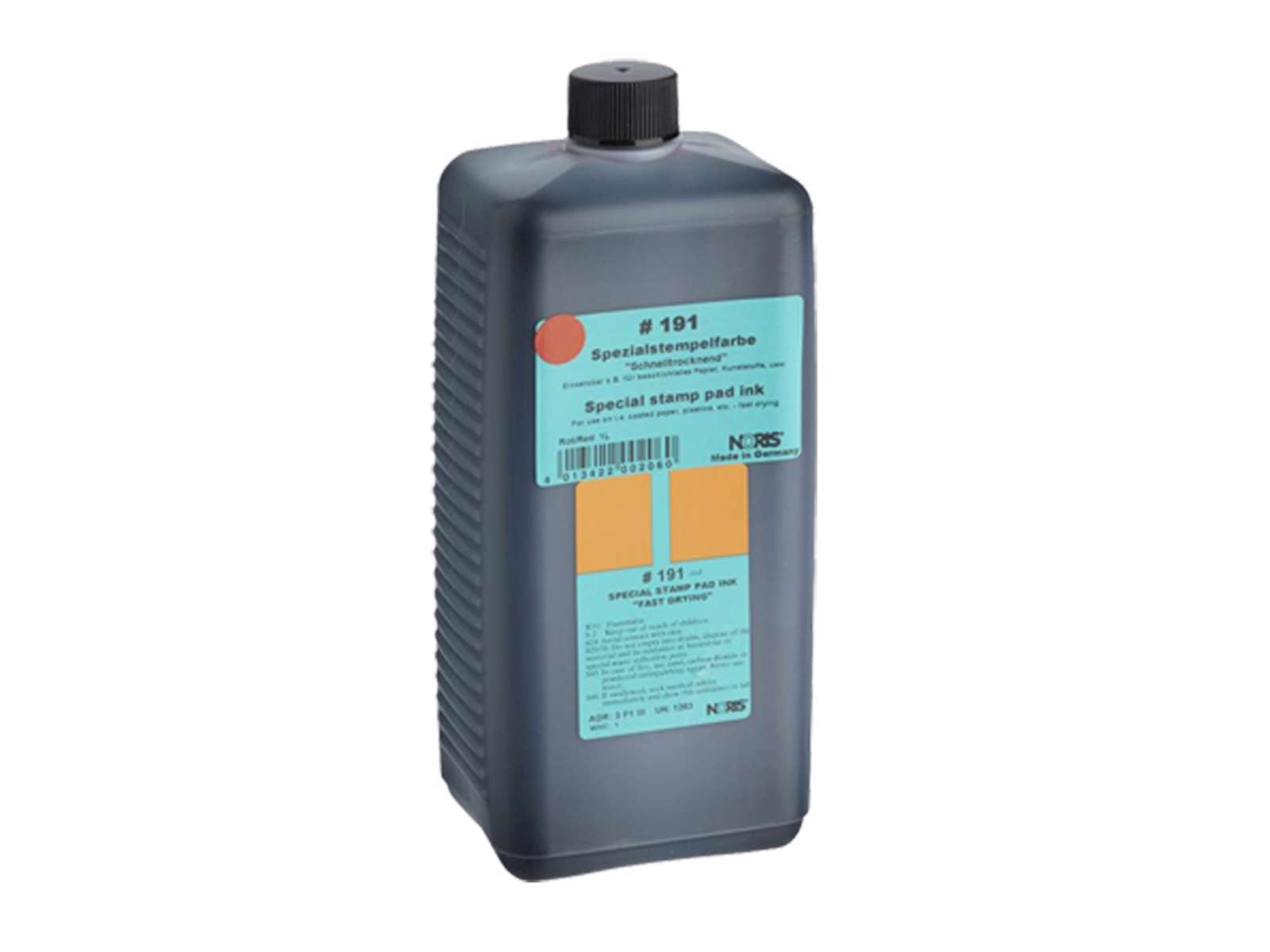 191 farve i rød til glatte overflader. Farven er vandfast og fortynderbaseret. Farven kan bruges i selvfarvende stempler.
