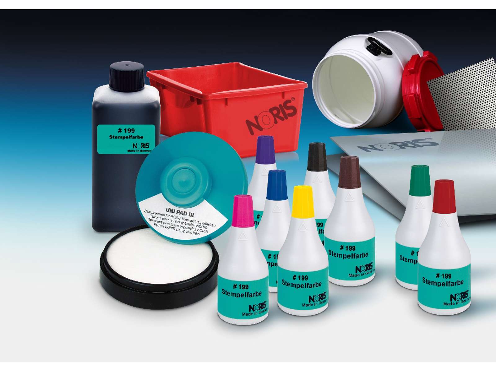50 ml. 199 farve hurtigtørrende farve til glatte overflader. Farven er vandfast og på fortynderbasis. Bruges til håndstempler, hvor man bruger en separat farvepude med låg.