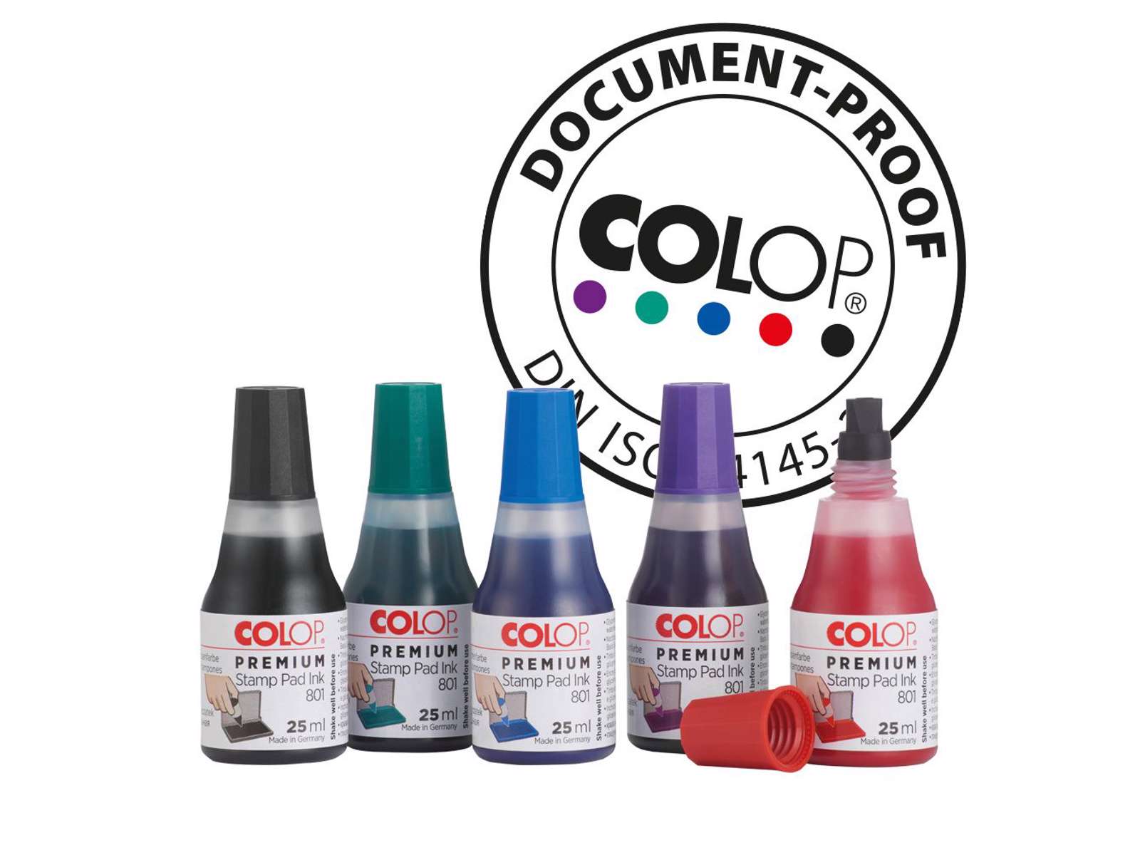 COLOPs standard inks are document proof. The range also includes UV inks, archival and quick drying inks.
