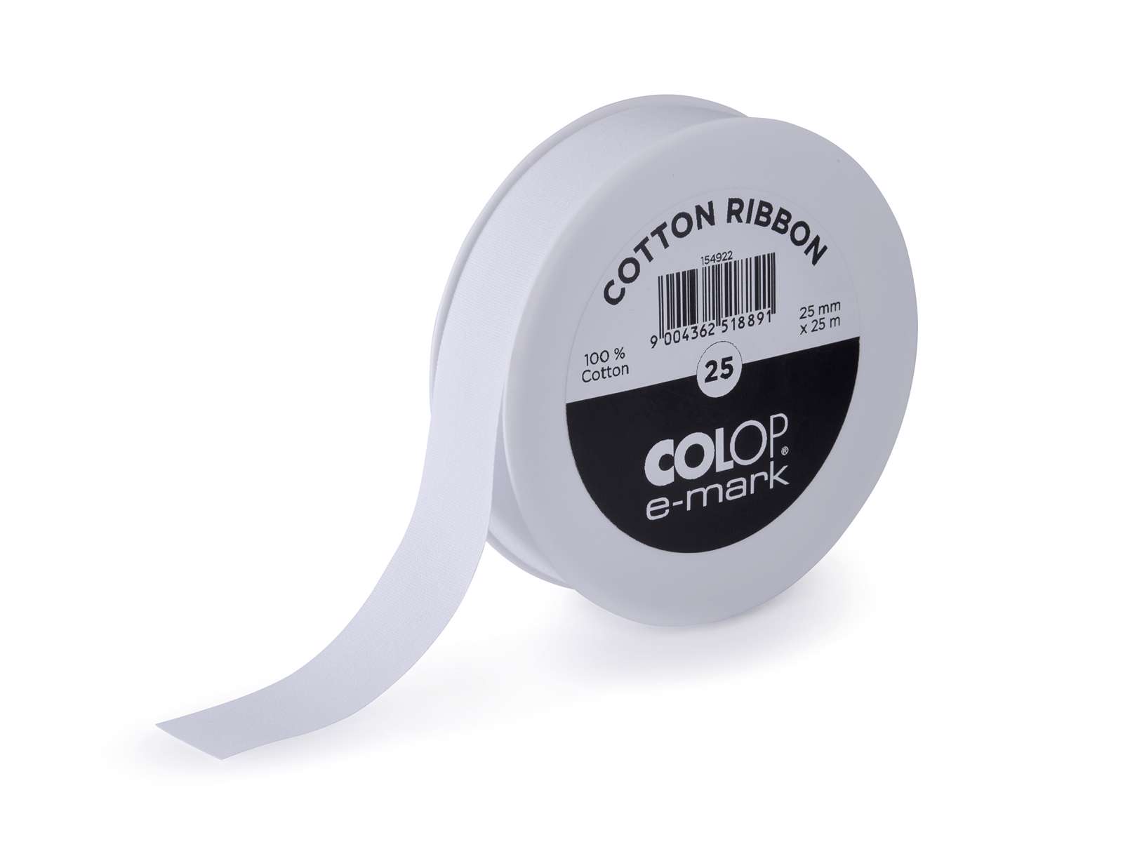 1 stk hvidt gave bånd i rulle 25 mm høj 25 meter langt, passer til Emark holderen.