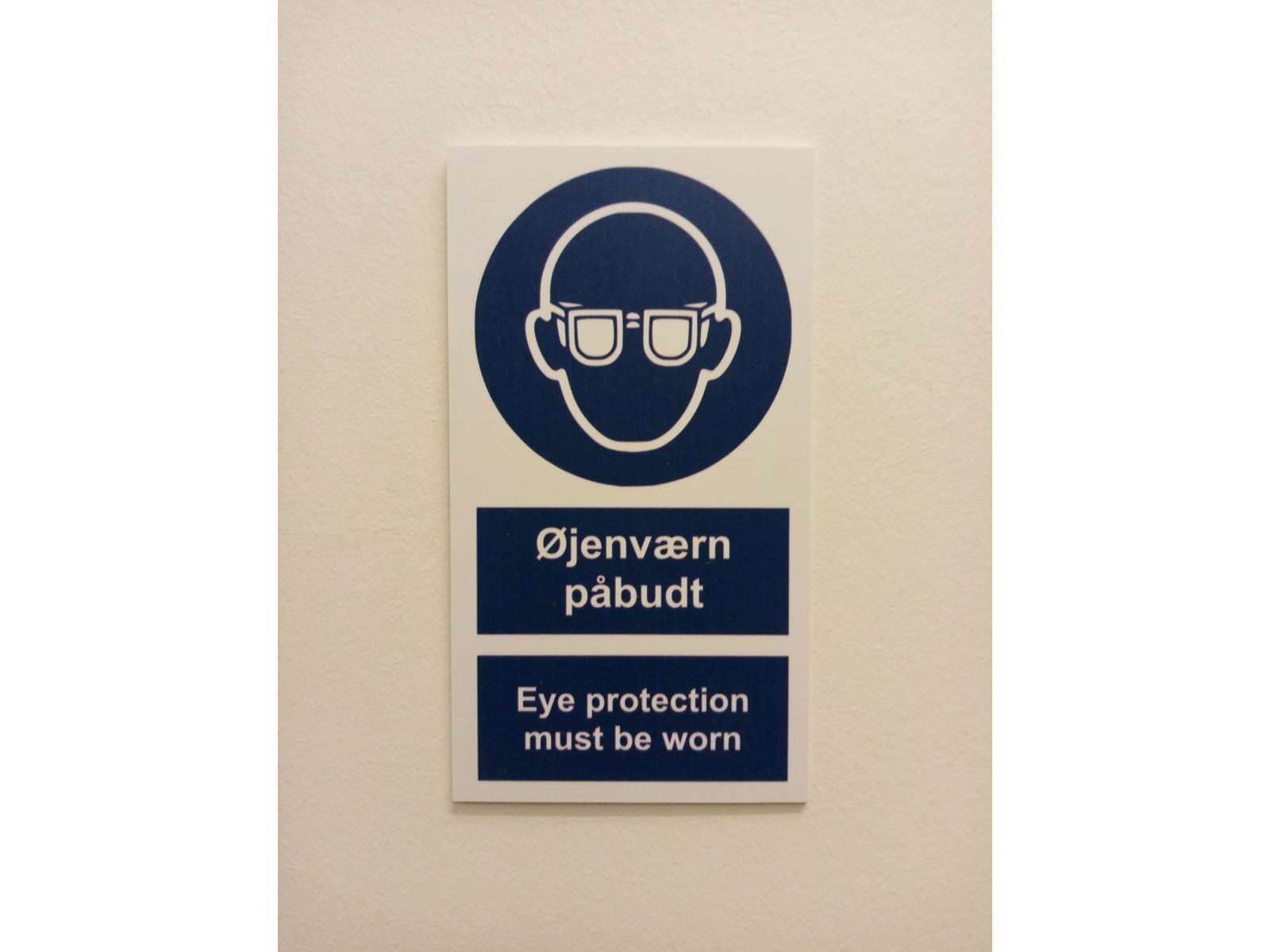 Der er monteret dobbelt klæbende tape på bagsiden, så skiltet nemt kan monteres.