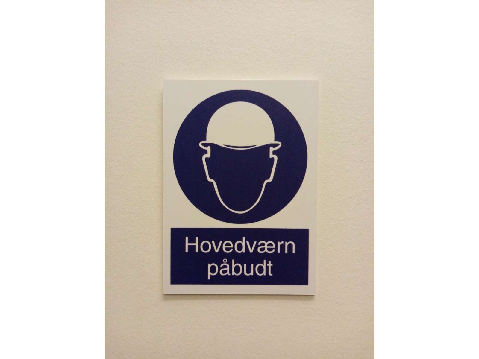 Der er monteret dobbelt klæbende tape på bagsiden, så skiltet nemt kan monteres.