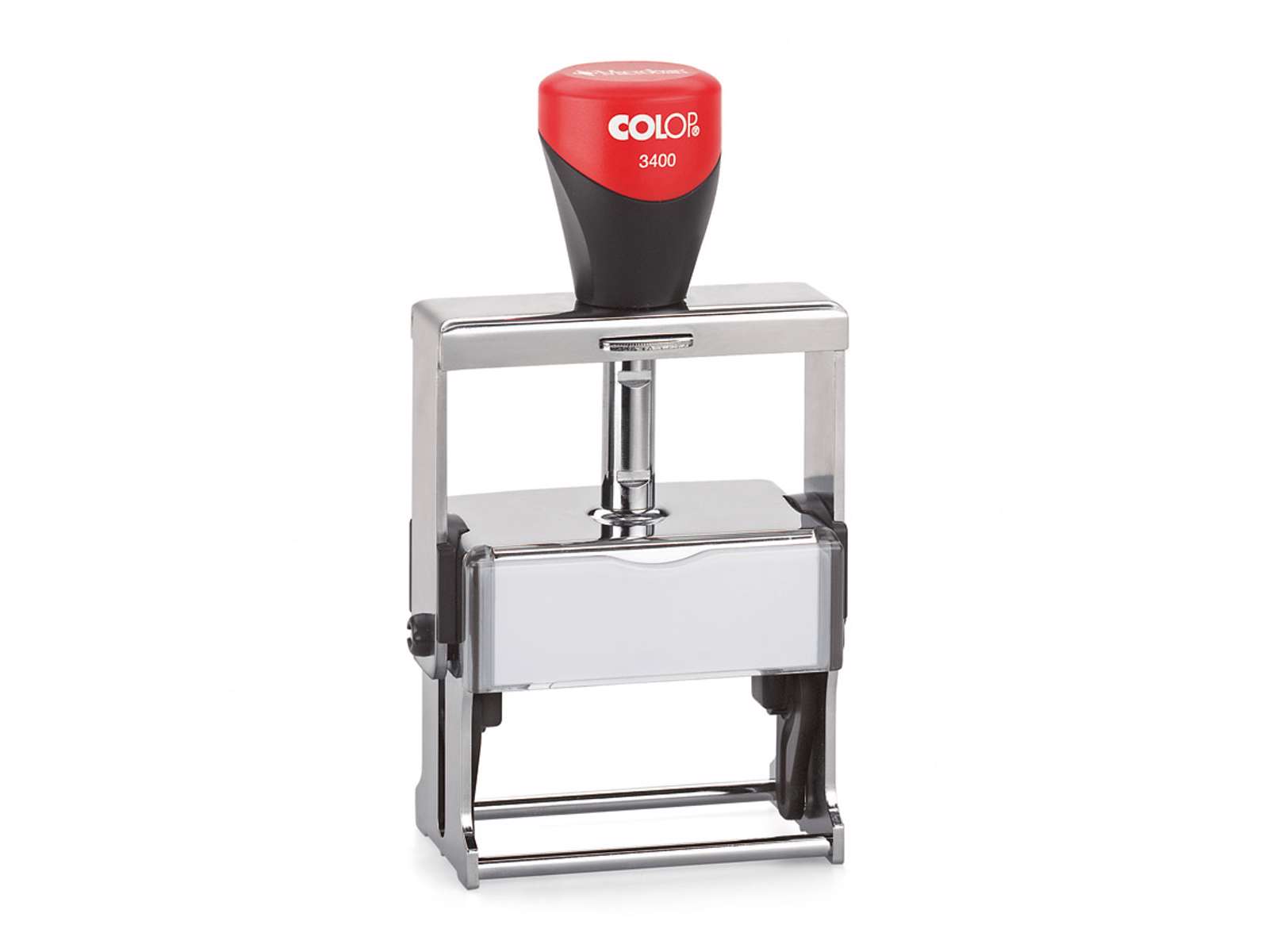 Colop 3400 er et metal stempel 80 % stål med nem og ren udskiftning a f farvepude.