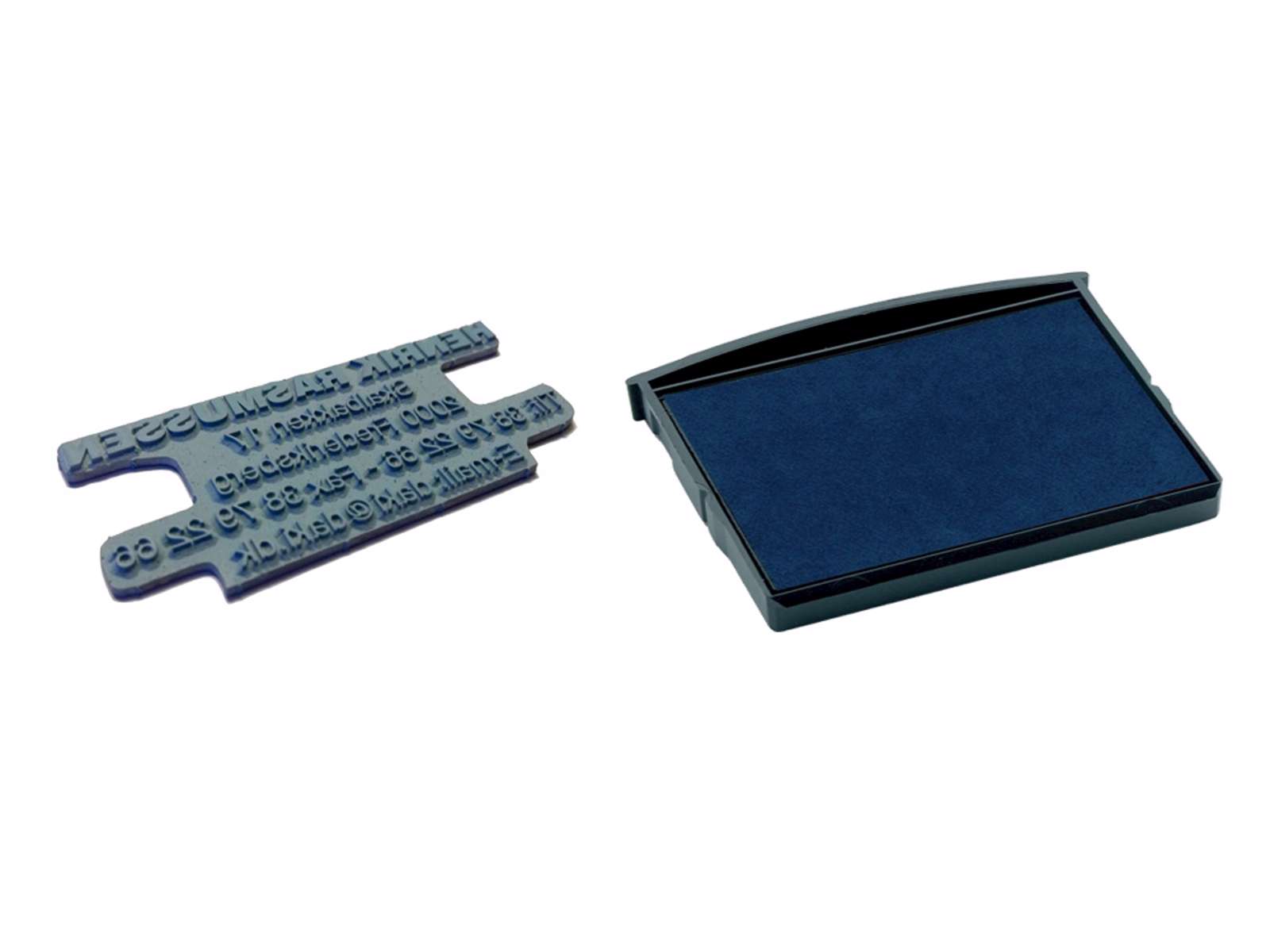 1 stk. tekstplade leveret på dobbelt klæbende tape, samt en blå farvepude.