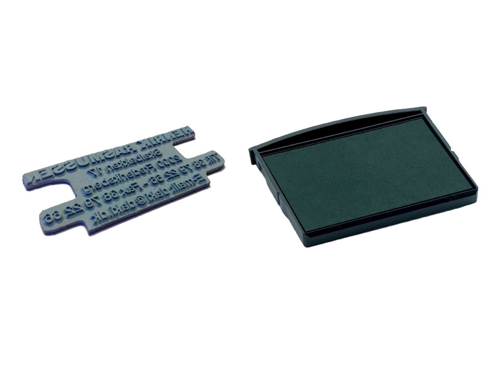 1 stk. tekstplade leveret på dobbelt klæbende tape, samt en grøn farvepude.