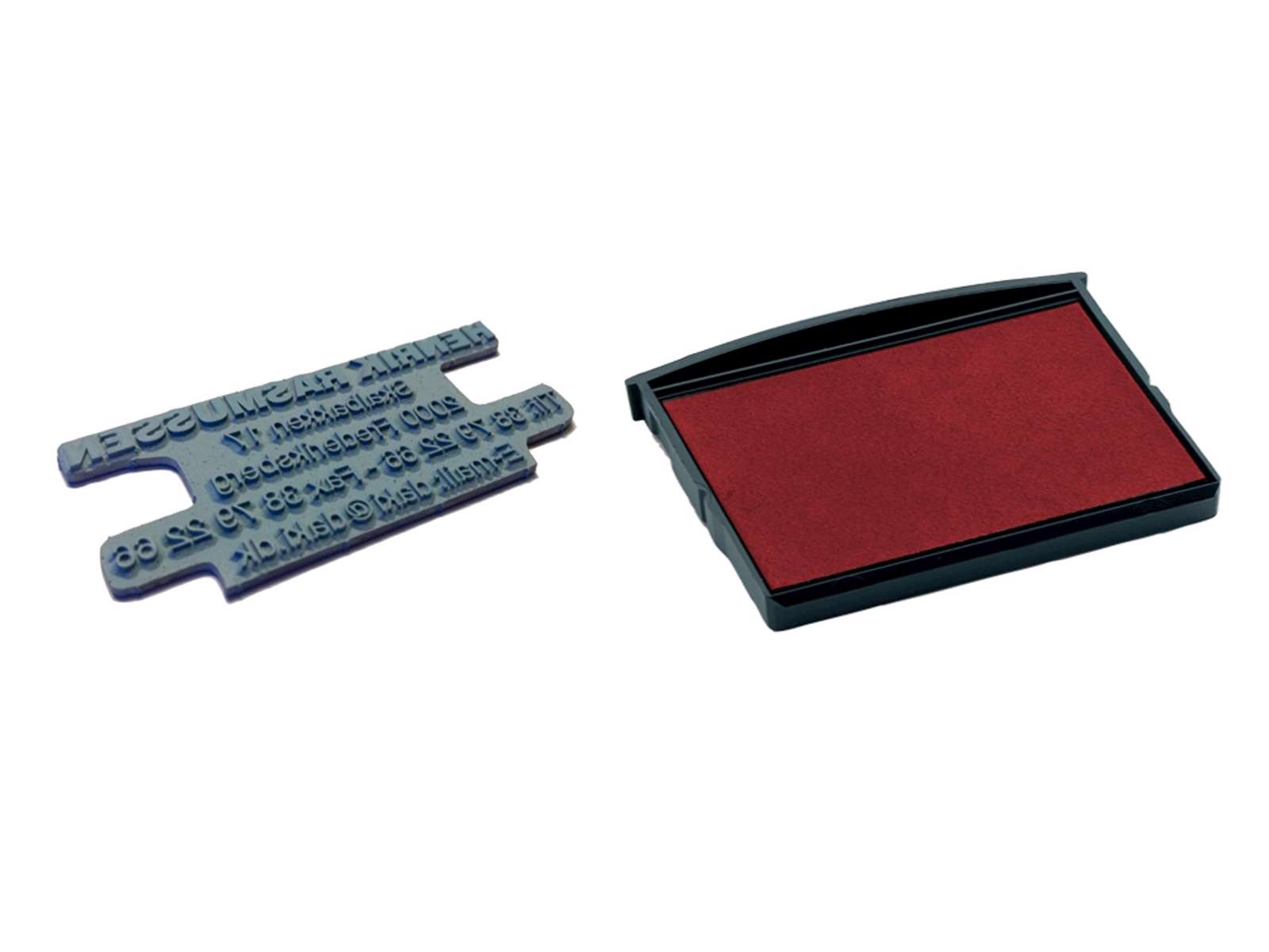 1 stk. tekstplade leveret på dobbelt klæbende tape, samt en rød farvepude.