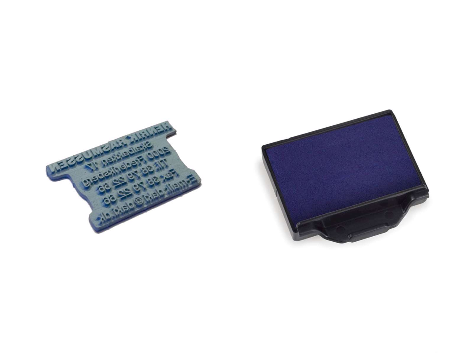 Op til 4 linjer. Mål på tekstpladen 40x23mm. Ny tekstplade og far vepude til Trodat 5200 stempel.