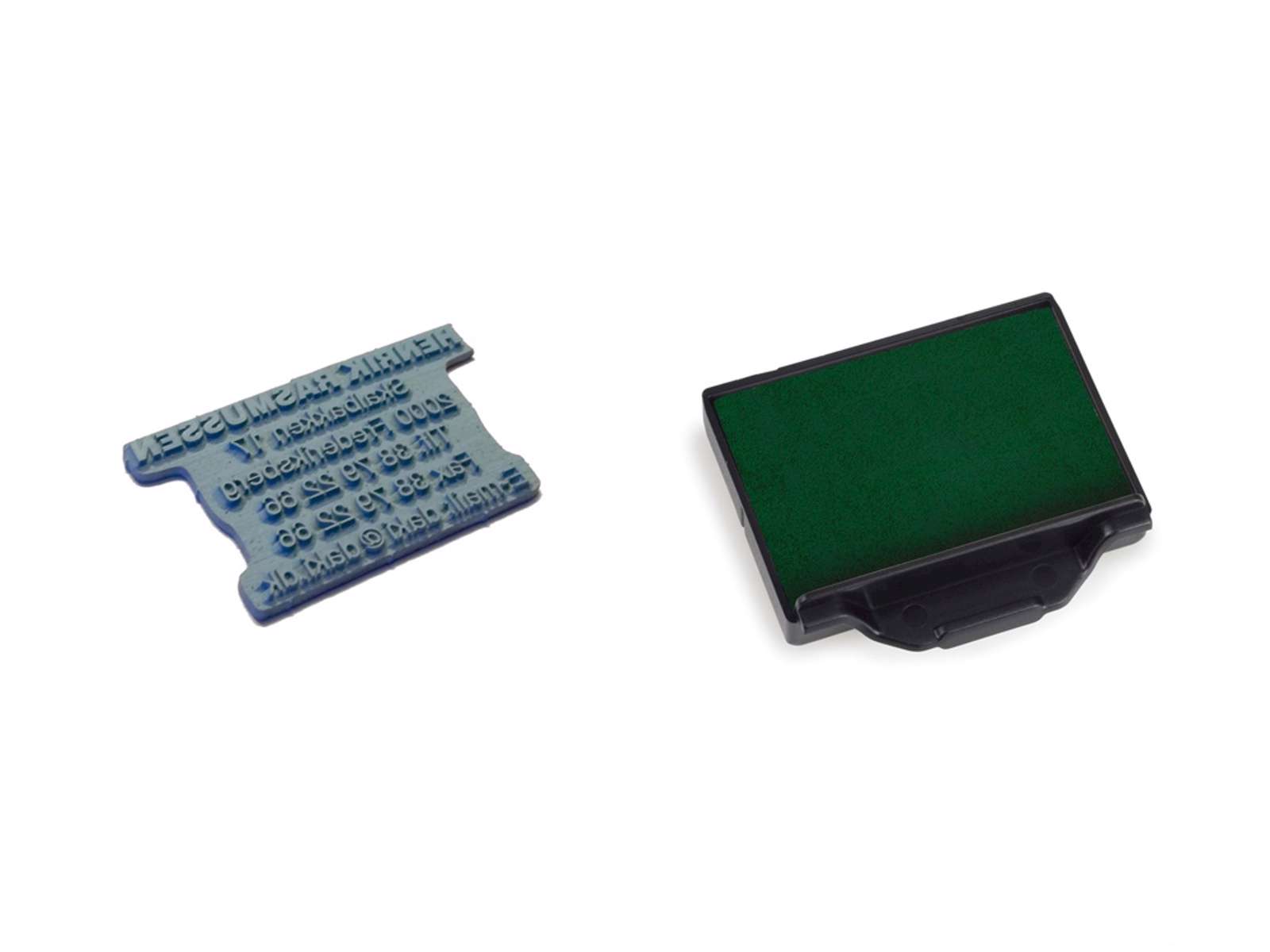 Klik på skabelonen, og lav din egen tekst. Op til 4 linjer. Mål på tekstpladen 40x23mm. Ny tekstplade og far vepude til Trodat 5200 stempel.