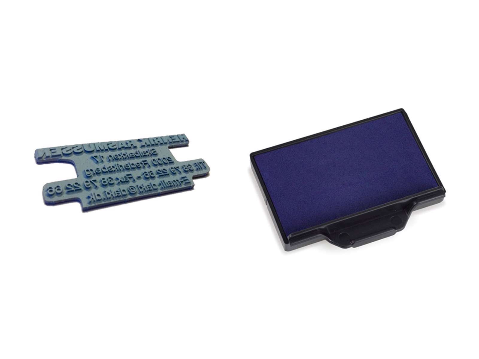 Op til 6 linjer. Mål på tekstpladen 55x22mm. Ny tekstplade og far vepude til Trodat 5204 stempel.