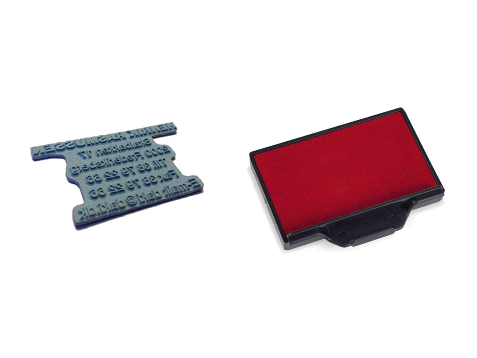 Op til 7 linjer. Mål på tekstpladen 55x32mm. Ny tekstplade og far vepude til Trodat 5206 stempel.