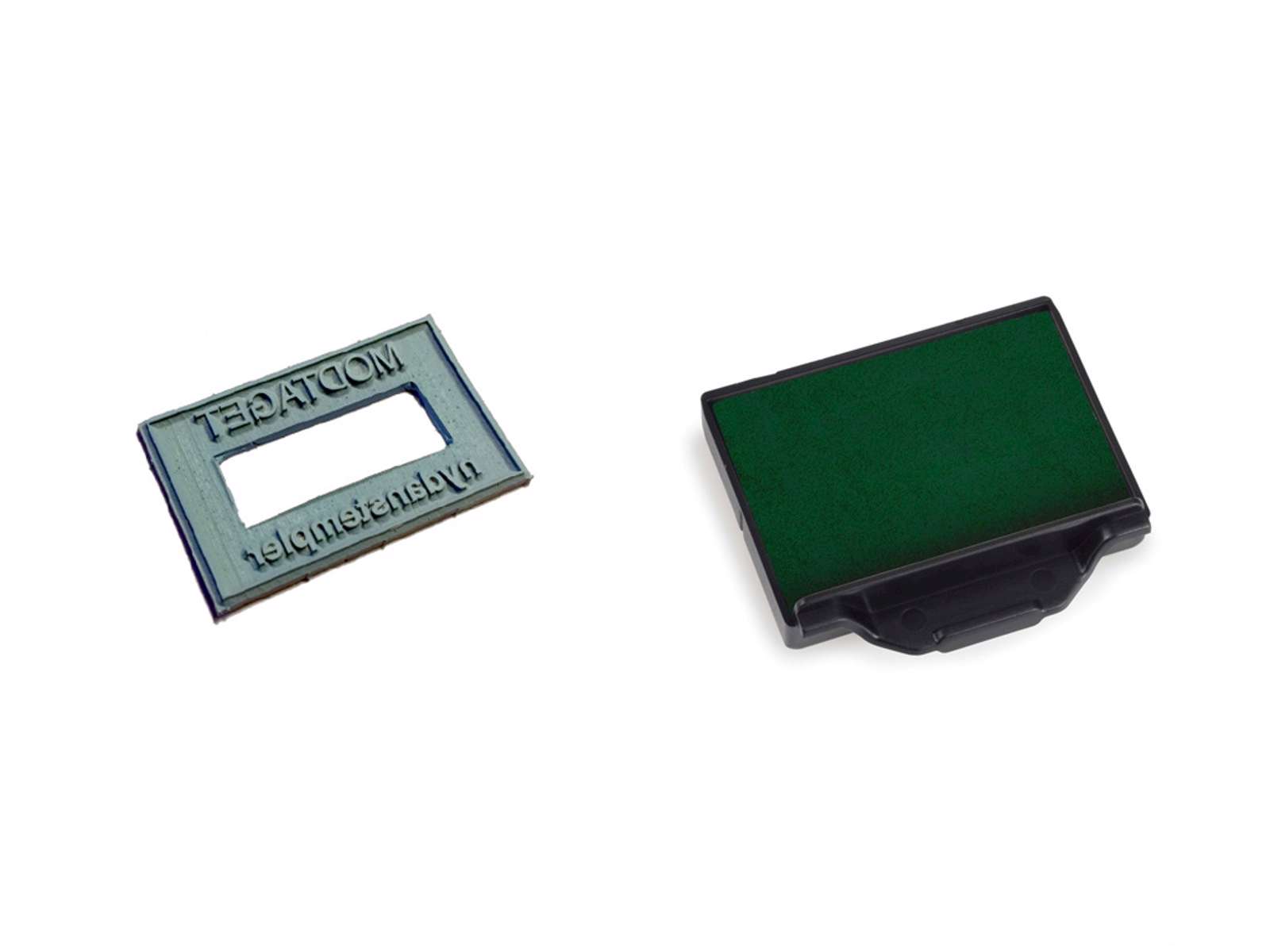 Klik på skabelonen, og lav din egen tekst. Op til 4 linjer. Mål på ; tekstpladen 38x23 mm. Ny tekstplade og farvepude til 5430 dato stempel.