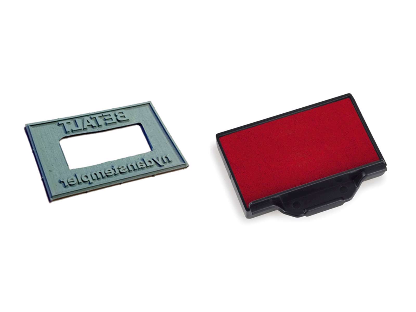 Klik på ska belonen, og lav din egen tekst. Op til 4 linjer. Mål på tekstpladen 45x27 mm Ny tekstplade og farvepude til 5440 dato stempel.
