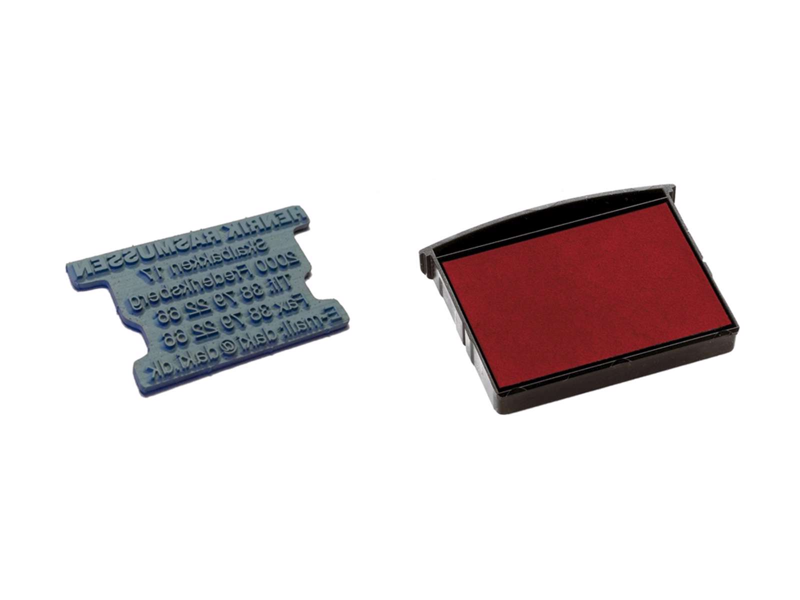 Op til 6 linjer. Mål på tekstpladen 43x28mm. Ny tekstplade og far vepude til 2300 stempel.