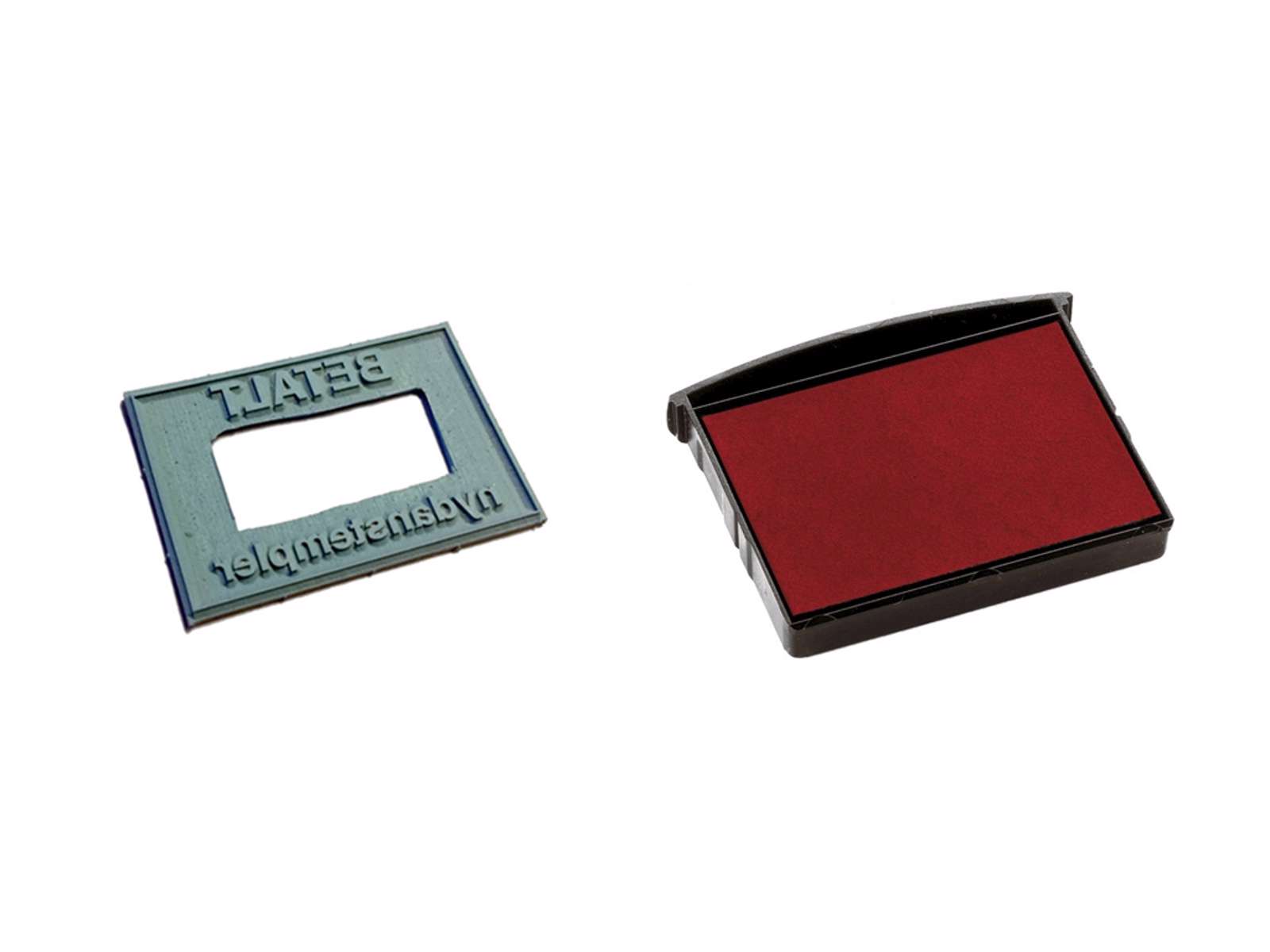 Klik på skabelonen, og lav din egen tekst.Op til 6 linjer. Mål på tekstpladen 43x28mm. Ny tekstplade og farv epude til 2360 dato stempel.