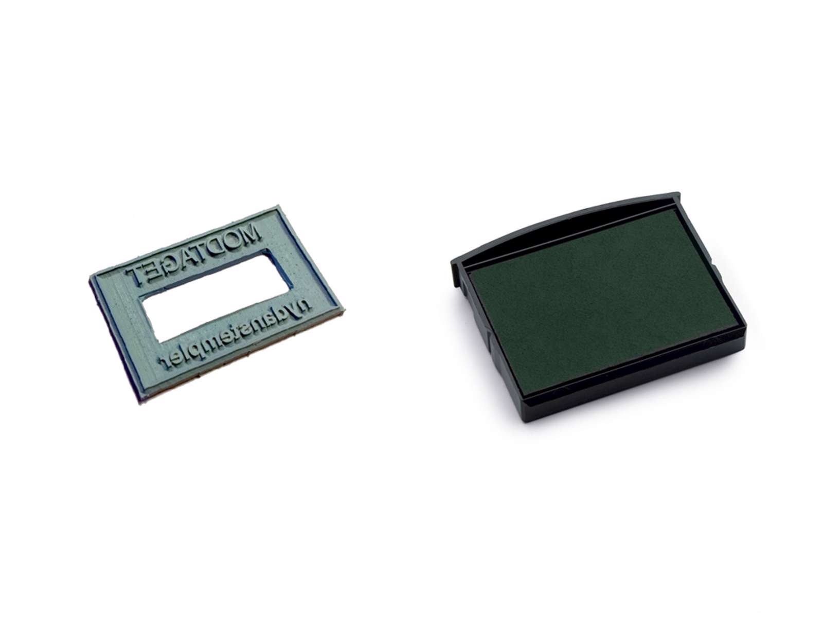 Klik på skabelonen, og lav din egen tekst. Op til 2 linjer. Mål på tekstpl aden 41x24mm. Ny tekstplade og farvepude til 3160 dato stempel.