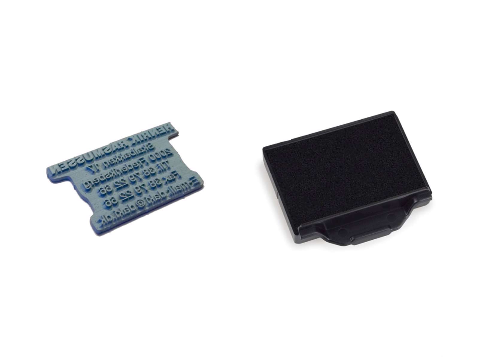 1 stk. tekstplade leveret på dobbelt klæbende tape, samt en valgfri farvepude. Klik på skabelonen, og lav din egen tekst. Op til 4 linjer. Mål på tekstpladen 40x23mm. Ny tekstplade og farvepude til Trodat 5200