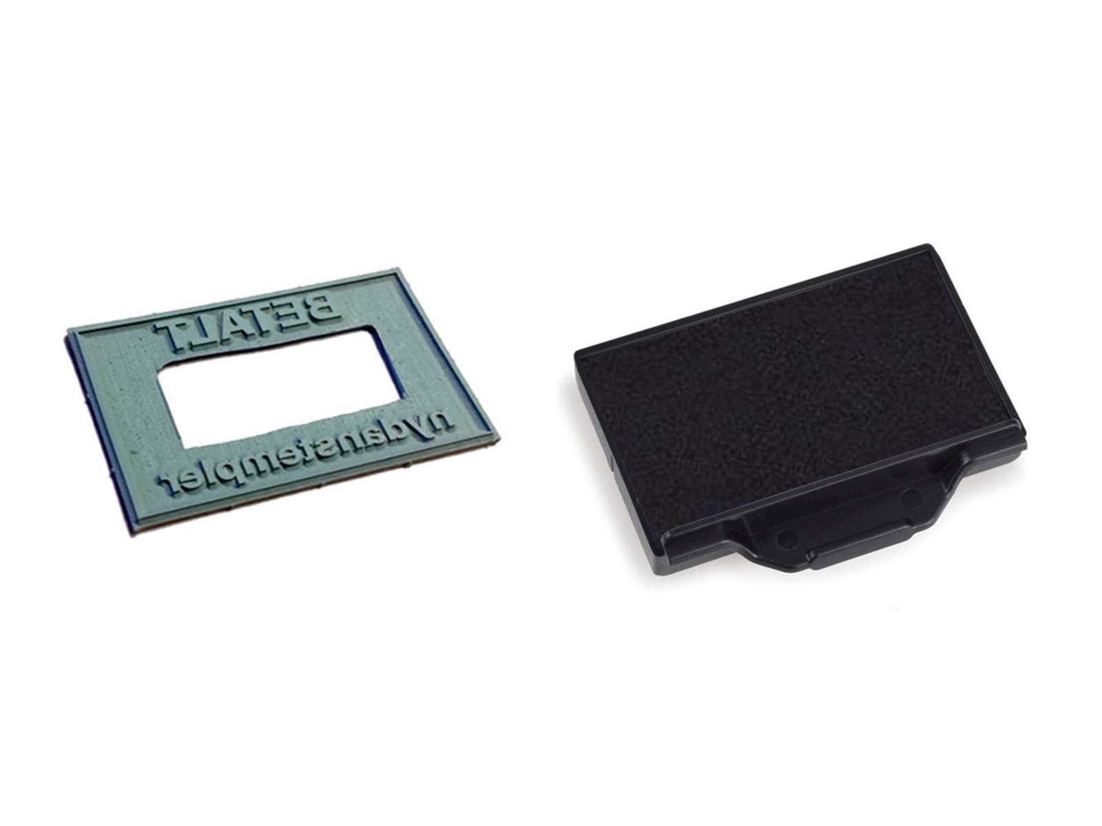 Klik på skabelonen, og lav din egen tekst. Op til 4 linjer. Mål på ; tekstpladen 45x27 mm Ny tekstplade og farvepude til 5440 dato stempel.