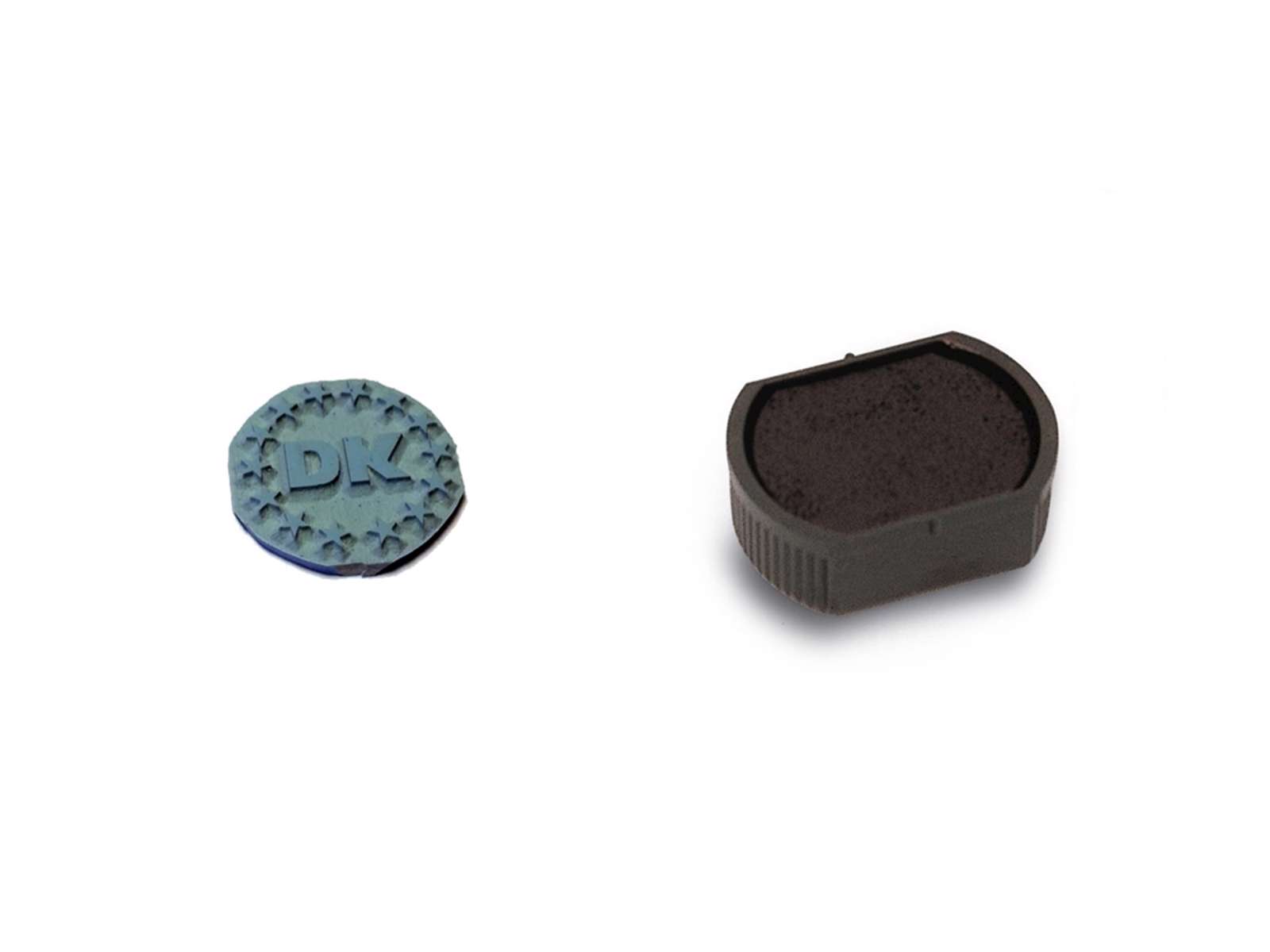 Klik på skabelonen, og lav din egen tekst. Op til 2 linjer. Mål på tekstpladen 17 mm. i diameter
