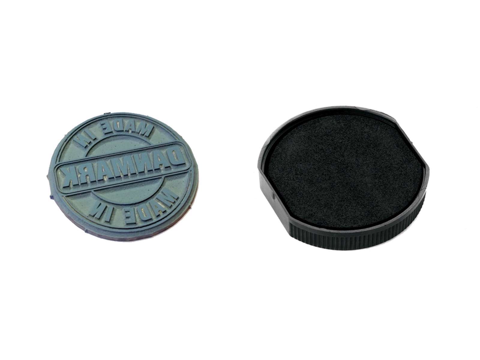 Klik på skabelonen, og lav din egen tekst.Op til 3 linjer. Mål på tekstpladen Ny tekstplade og farvepude 30 mm. i diameter