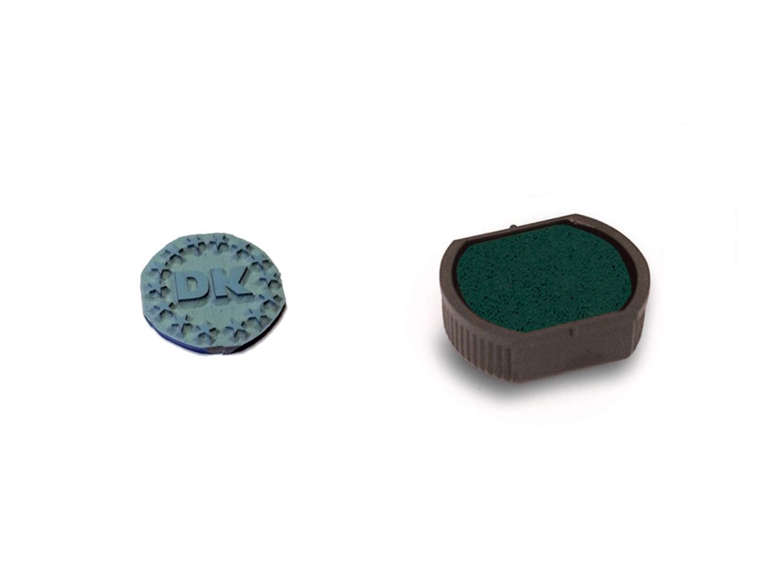 Klik på skabelonen, og lav din egen tekst. Op til 2 linjer. Mål på tekstpladen 17 mm. i diameter