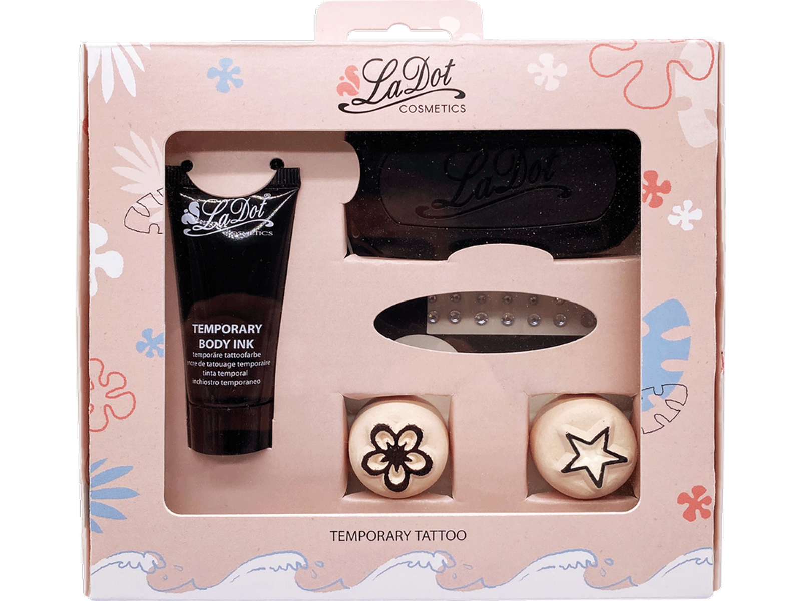 Ladot tatoveringer er kosmetisk base, vandafvisende og nemme at fjerne med makeupfjerner ell er babyolie.